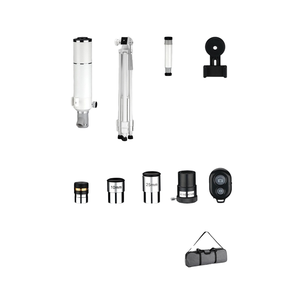Súčasťou balenia je azimutálna montáž, ktorá umožňuje jednoduchý pohyb ďalekohľadu hore-dole a vľavo-vpravo, čo uľahčuje pozorovanie objektov na oblohe. K dispozícii je aj statív na stabilné udržanie ďalekohľadu, hľadáčik, ktorý uľahčuje zaostrovanie na objekty, a adaptér pre smartfón na zhotovovanie úžasných fotografií nebeských telies.