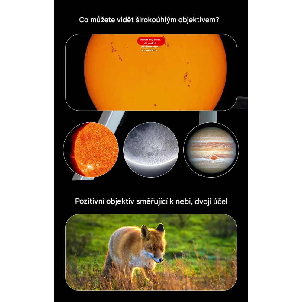 Tento teleskop je navrhnutý tak, aby inšpiroval a vzdelával malých nadšencov astronómie. Vďaka jednoduchému dizajnu a ľahkej manipulácii sa deti môžu ľahko naučiť základy pozorovania hviezd a planét. Tento teleskop nie je len nástrojom na zábavu, ale aj takou skvelou vzdelávacou pomôckou, ktorá podporuje rozvoj vedeckého myslenia a zvedavosti.
