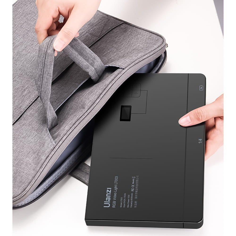 Lampa Ulanzi LT003 je ľahký obdĺžnikový panel pozostávajúci z 266 LED DIÓD LED diódy - 70 sú zodpovedné za vyžarovanie teplého svetla, ďalších 70 za studené svetlo a 126 RGB LED diód. Zariadenie umožňuje nastaviť teplotu farieb v CCT režime z 2500 na 9000 K a priebežne meniť jeho výkon z 1 na 100%. Vyžaruje tiež svetlo ľubovoľnej farby z palety farieb RGB a ponúka až 20 prednastavených nastavení tematické efekty. CRI ≥ 95 zabezpečuje vernú reprodukciu prirodzených farieb.